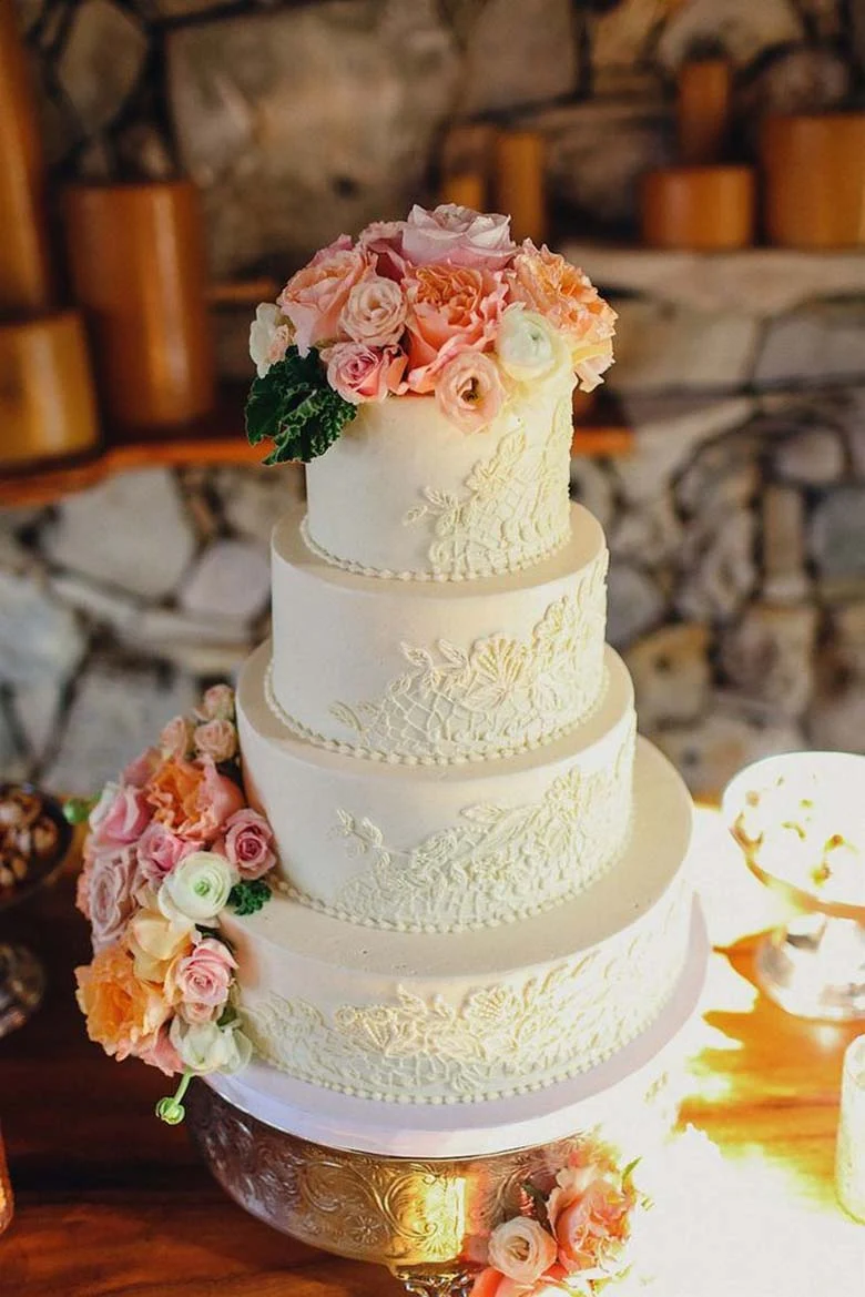 For this rustic Californian wedding, antique lace inspired the cake.